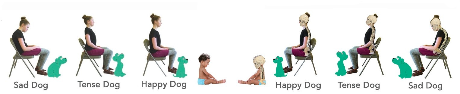 — You'll re-discover the strong, yet relaxed, middle way that exists between slouching (sad dogs) and tense over-correction (tense dogs). Chances are you once knew this way of sitting as small child—so how hard can it be, right?